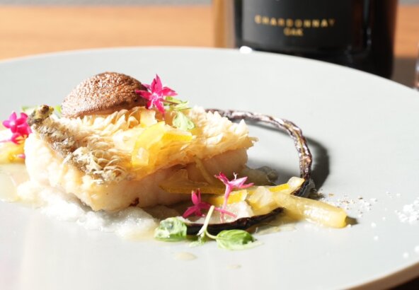 数種類の香草で焼き上げたイサキに、