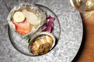 香ばしく焼き上げた金目鯛の身、冬野菜と共に包み込みオーブン焼きにした柚子香る極上の一品と、