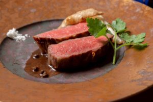 【淡路牛ロースのビステッカ~有馬山椒のソース】
