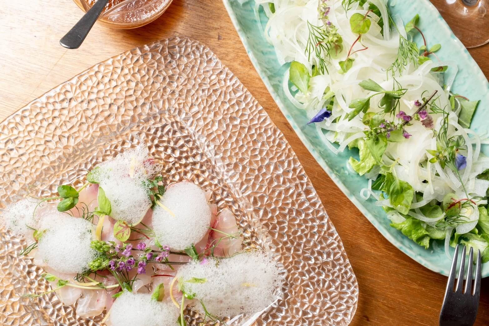 【鮮魚のカルパッチョ~日向夏の泡ソース】